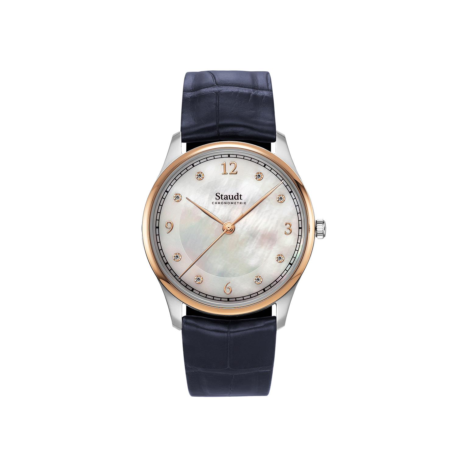 Prelude Petite Plus. A ladies' watch that exudes timeless elegance: slim in shape, understated in appearance, but rich in detail. The natural mother-of-pearl dial is given a warm glow by the sparkle of natural diamonds and the solid 18-carat rose gold bezel. Personalise the dial and wear a piece that is entirely your own.