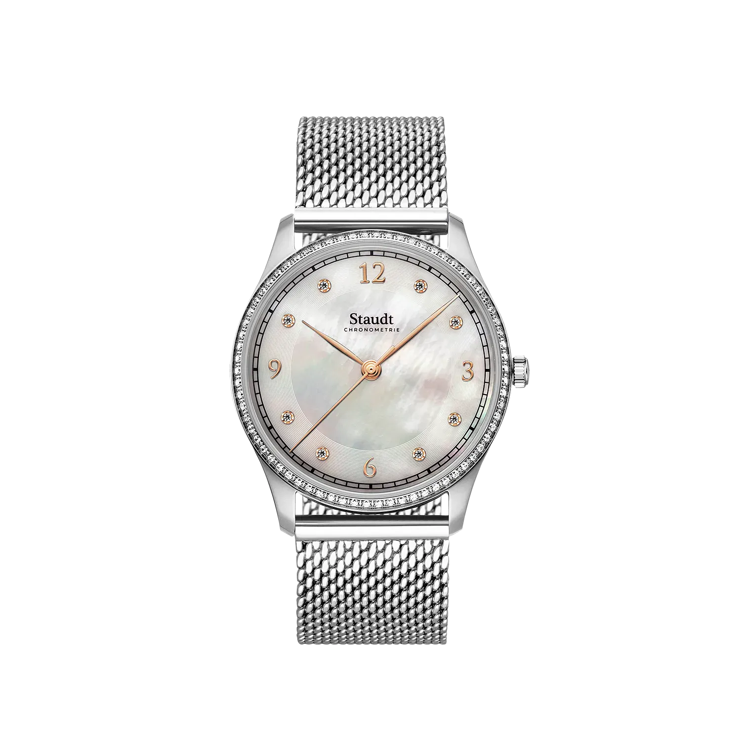 Elegante finesse. De rondingen van de Prelude Petite Plus zijn ingetogen en verfijnd. Doordat het zijprofiel in een welving is ontworpen draagt het horloge bijzonder slank. De diep gepolijste horlogekast is gemaakt van edelstaal, gezet met 70 natuurlijk diamanten. Binnenin tikt een betrouwbaar Zwitsers kwaliteitsuurwerk.