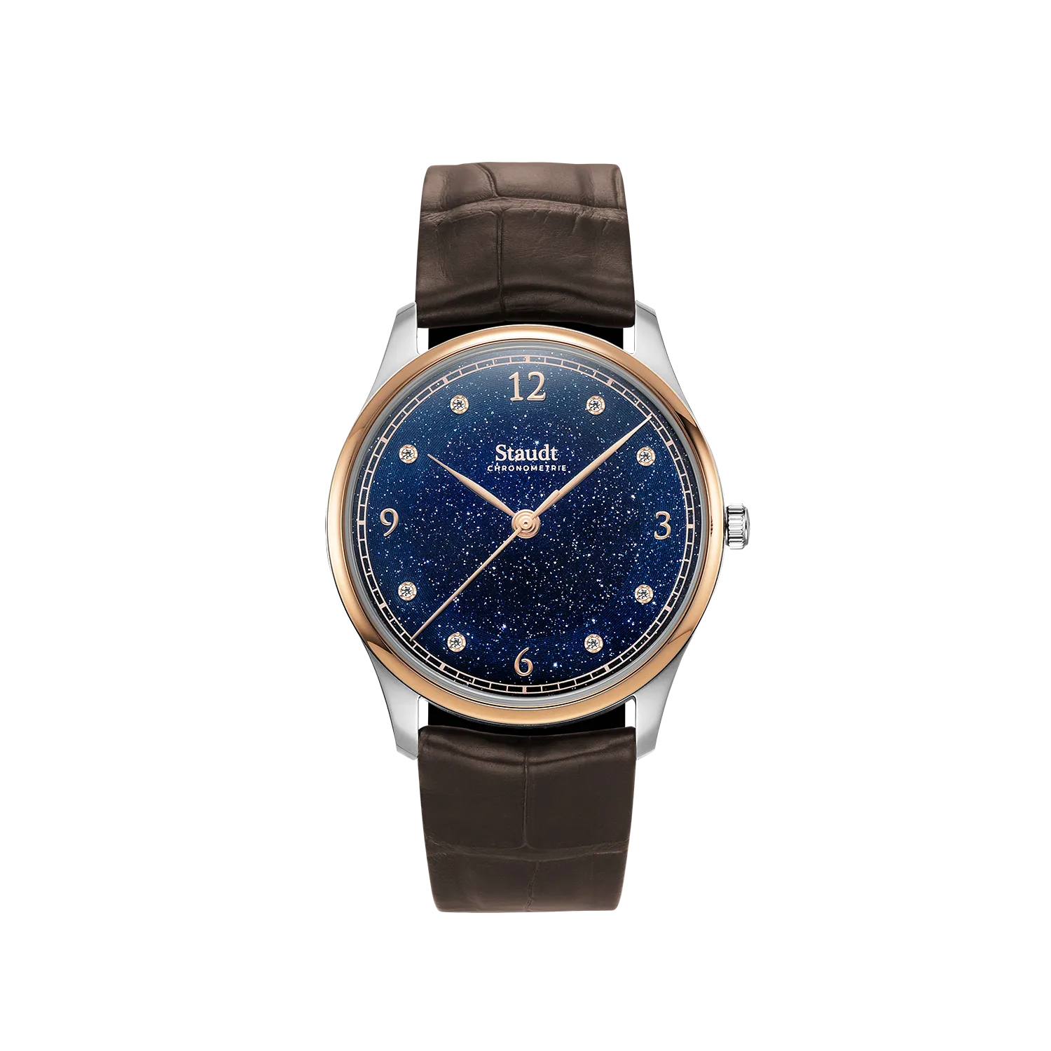Prelude Petite Plus. Een dameshorloge dat tijdloze elegantie ademt: slank van vorm, ingetogen van uitstraling, maar rijk aan detail. De uniek glinsterende natuurlijke aventurijnkwarts-wijzerplaat krijgt in edelstalen horlogekast een warme gloed door de natuurlijke diamanten op de wijzerplaat. Personaliseer de wijzerplaat en draag een sieraad dat helemaal van jou is.